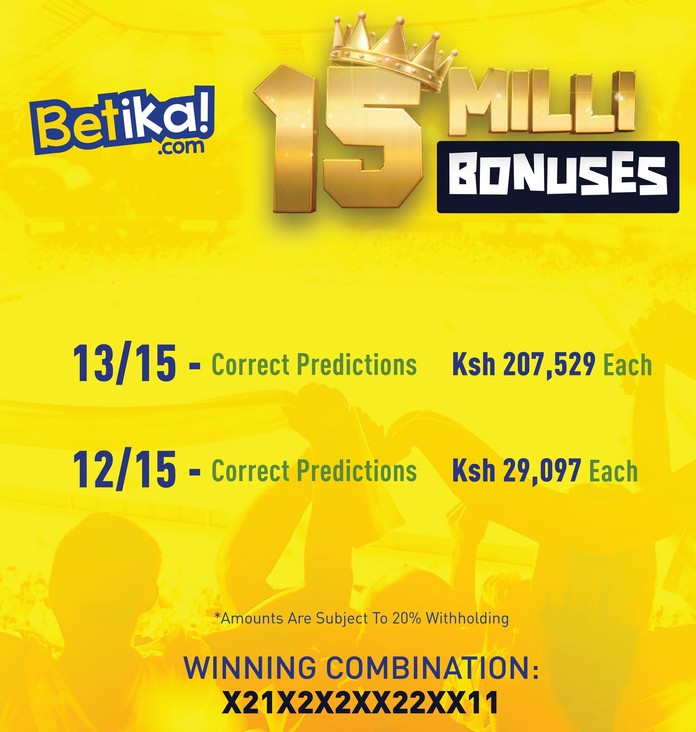 The result for Betika Midweek Jackpot is now out. Bonuses were paid for 12,13 and 14 correct games. Below is how the bonuses were paid: